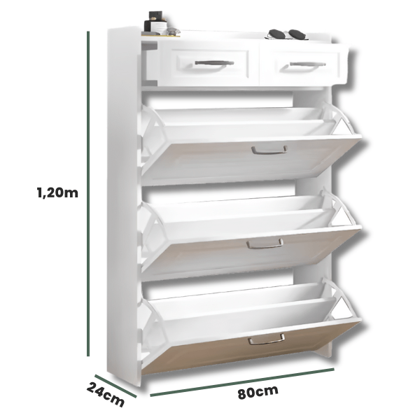 Armário de Sapatos com 3 Portas e 2 Gavetas